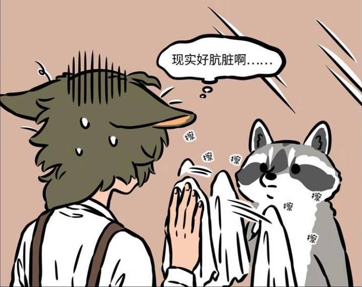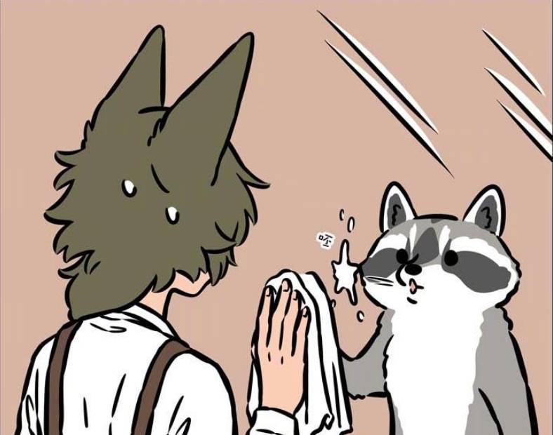 因此瓦陶陶擦玻璃时候出现在眼前,与她四目相对的不是高颜值帅哥,而是一只小浣熊,虽然小浣熊也很可爱,但与瓦陶陶的幻想相去甚远