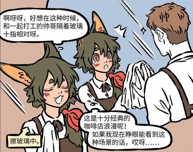 虽然如此,但作为少女的瓦陶陶还是忍不住幻想能和帅哥员工一起打工的场景